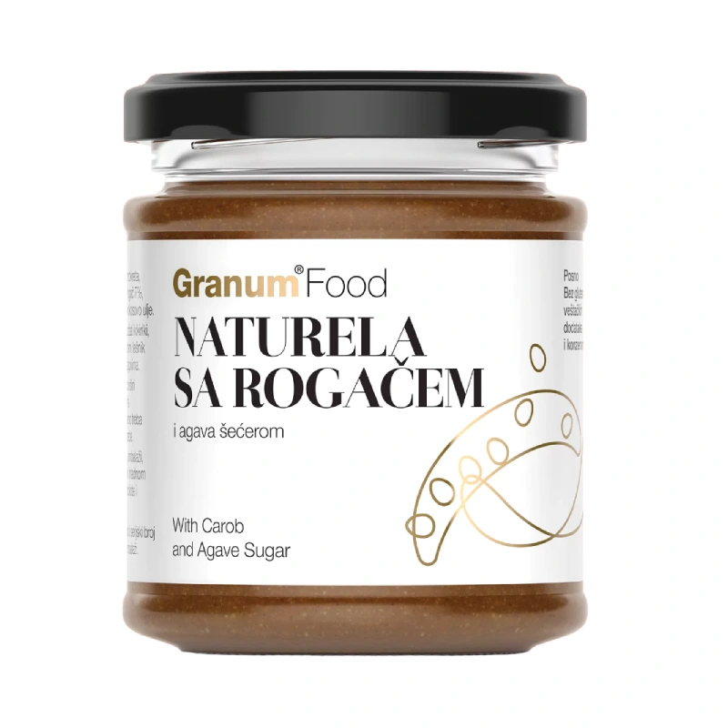 Naturela namaz sa rogačem i agava šećerom savršen je izbor za sve koji žele zdraviju alternativu klasičnim čokoladnim namazima. Rogač, prirodno sladak i bogat aromom, daje ovom namazu pun, čokoladni ukus bez potrebe za dodatnim rafinisanim šećerom. Zaslađen je blagim agava šećerom, a zahvaljujući suncokretovim semenkama i kokosovom ulju, sadrži zdrave nezasićene masne kiseline (omega 6 i 9) koje doprinose očuvanju zdravlja srca i regulaciji holesterola.