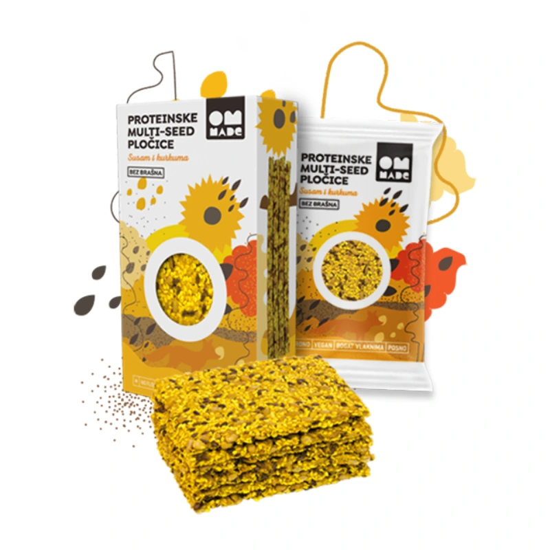 Naziv proizvoda: Proteinske pločice sa susamom i kurkumom Om made